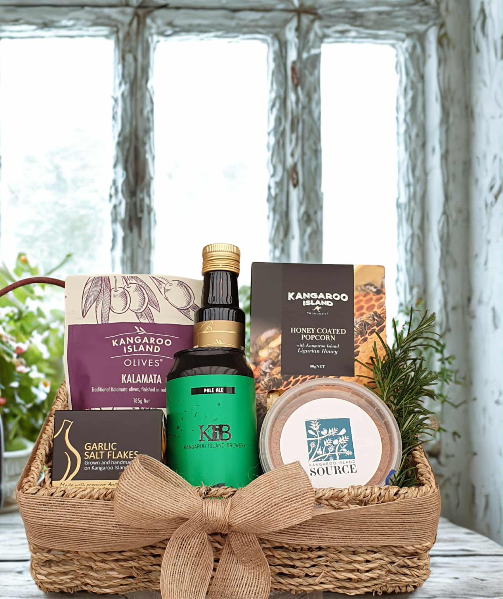 Every hamper carefully prepared in a woven basket, wooden crate, or open box, is available exclusively for delivery or pickup on Kangaroo Island to ensure our products reach their destination safely and in perfect condition.