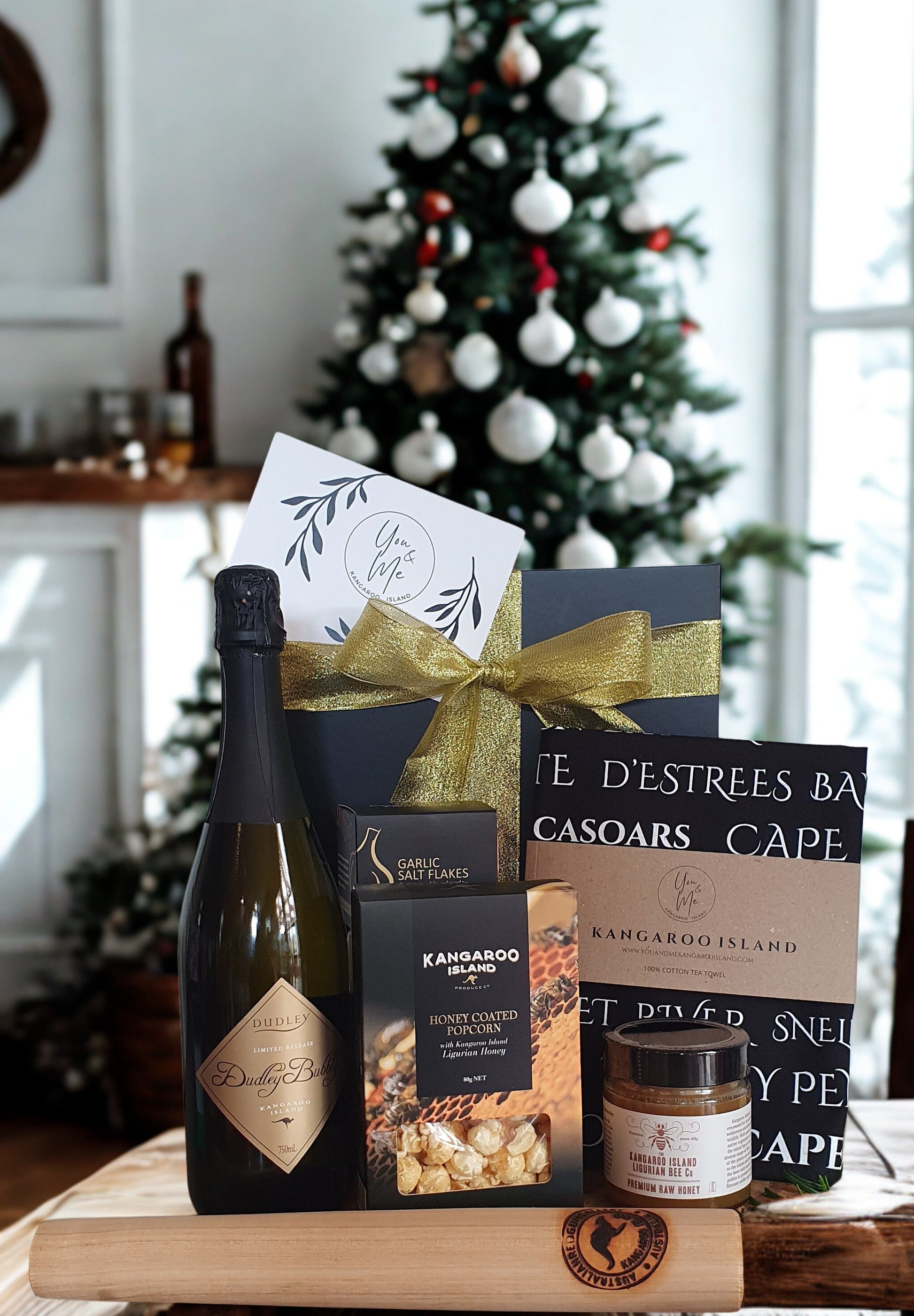 Introducing our signature Dudley Bubbly & Co. Hamper—a luxurious fusion of artisan craft and gourmet indulgence. Featuring a bottle of Dudley Bubbly - a premium limited release sparkling wine, a bespoke timber rolling pin, small-batch garlic salt, a premium woven Kangaroo Island tea towel, Kangaroo Island's famous pure Ligurian honey and delicious honey popcorn. Each item is chosen for its quality, provenance, and gourmet goodness. Perfect for premium gifting, corporate giving, or marking life’s most special moments.